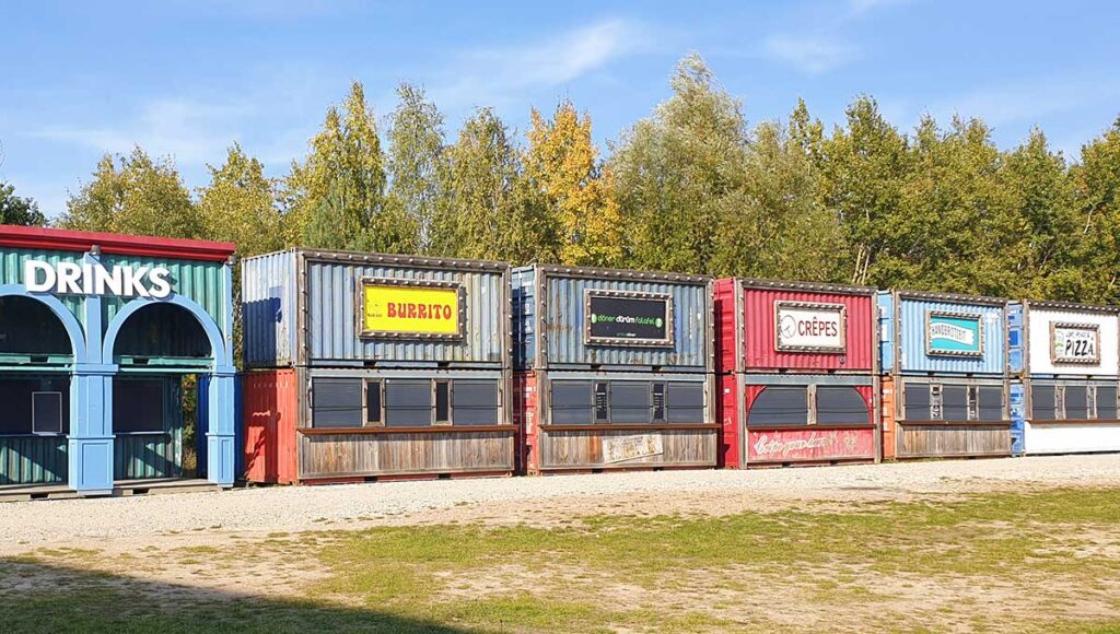 Bevor ich abfahre, mache ich noch einen kurzen Spaziergang zum Ortseingang von Ferropolis. Ja, Ferropolis hat bei der feierlichen Eröffung auch sein eigenes Ortsschild bekommen. Nur ein paar Meter entfernt davon stehen die bunten Snackhäuschen für Festivalbesucher. Die sind bei meinem Besuch zwar geschlossen aber auch nicht der Grund, warum ich hier hier gehe.